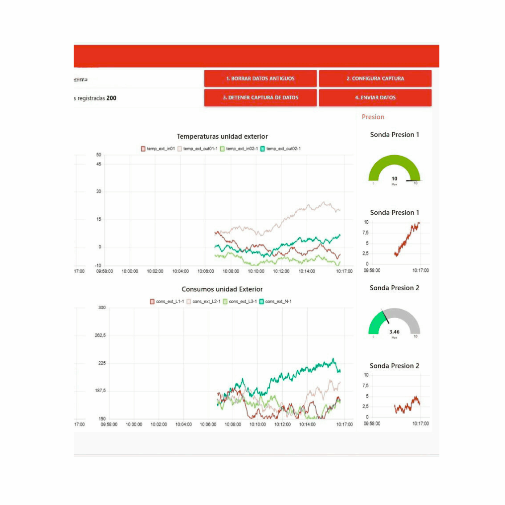 Si se detectan problemas de funcionamiento se emiten alarmas que pueden ser comunicadas al técnico o al cliente.